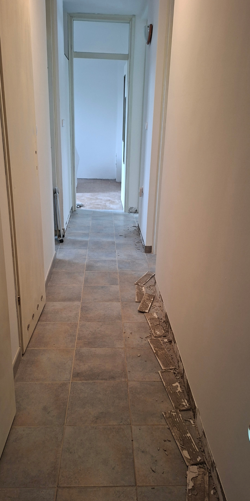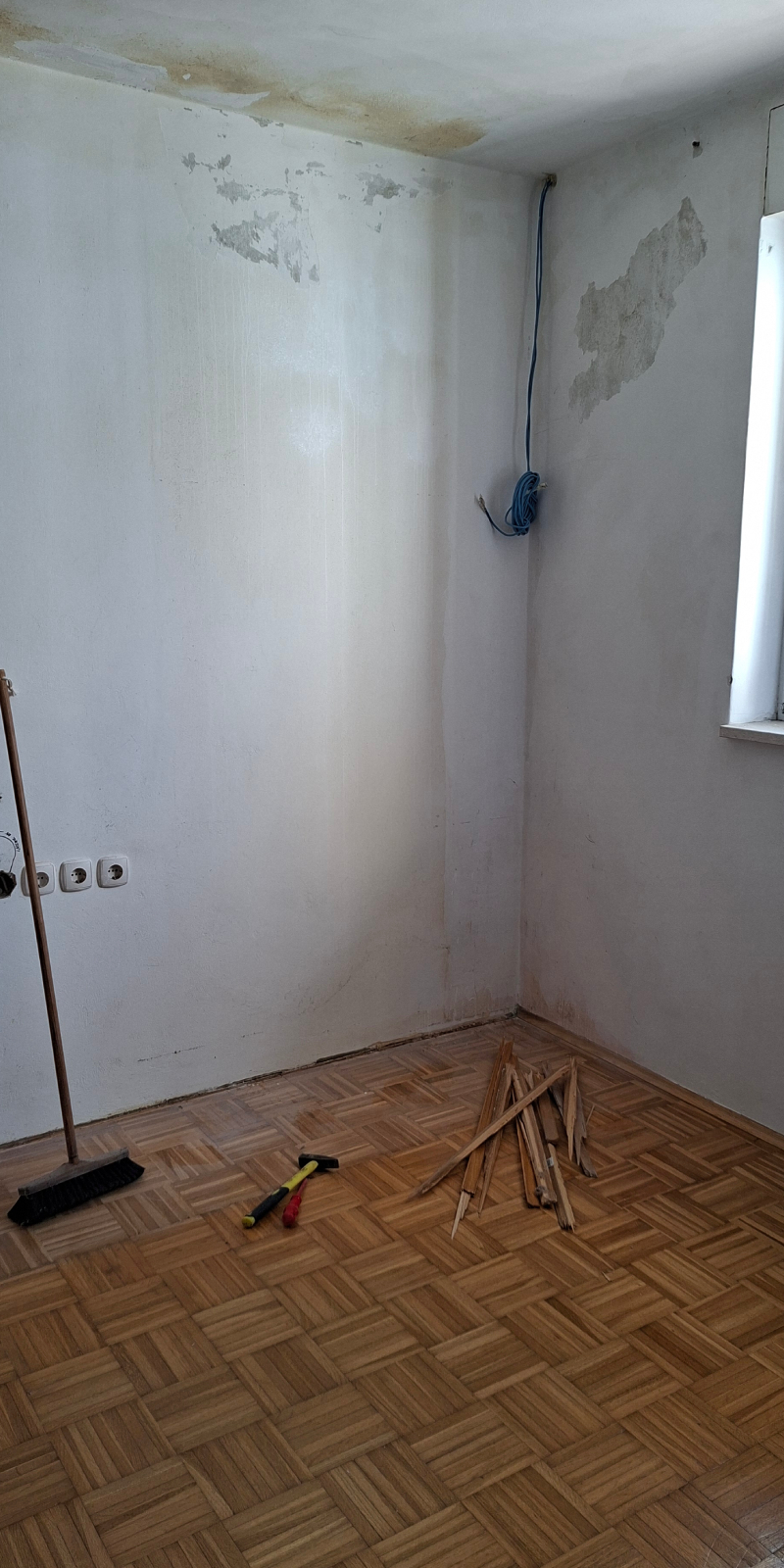 Demontaža starih talnih oblog - Odstranim stare talne obloge, kot so preproge ali zastareli laminat, da pripravim površino za novo namestitev.
