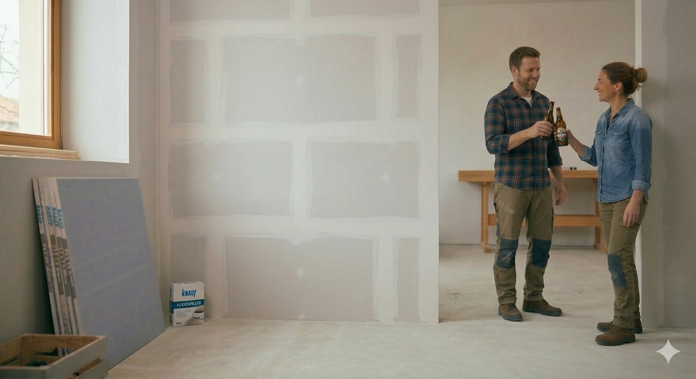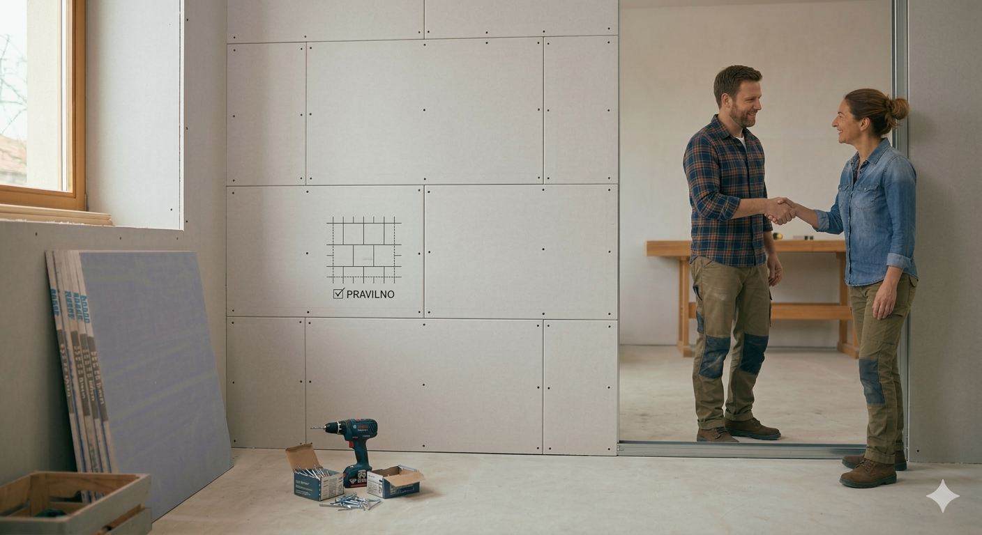 Zdaj, ko podkonstrukcija stoji, si vzemite pavzo in spijte tisto zasluženo pivo. Polovica posla je za vami, čestitam! Zdaj pa gremo na tisti del, ko prostor dejansko začne dobivati obliko. Začeli bomo s postavljanjem mavčnih plošč.