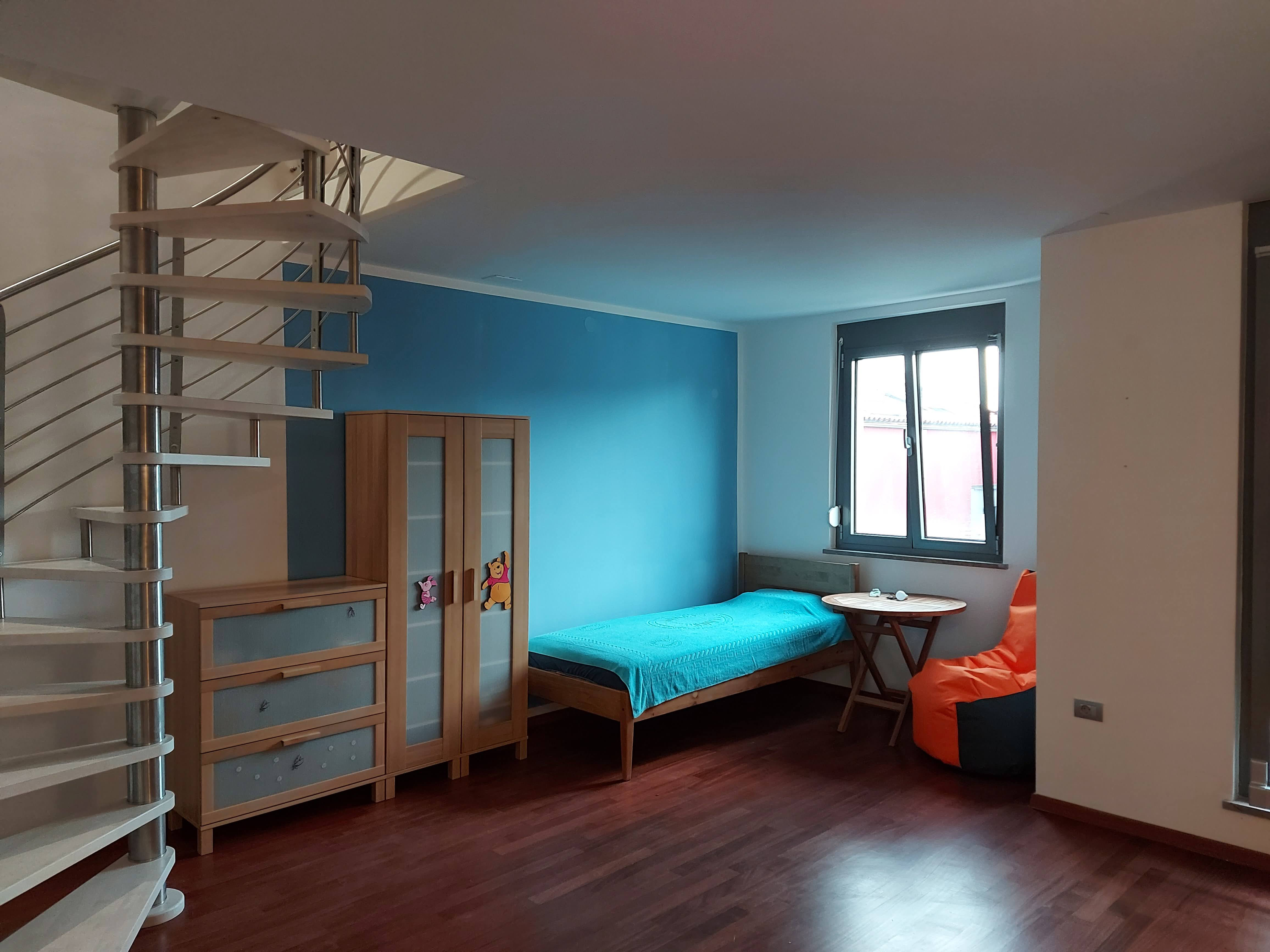 Apartma je pridobil dodatno etažo z dvema sobama, otroško in spalnico. Prej neizkoriščen prostor nad dnevno sobo je bil s pomočjo jeklene konstrukcije in kakovostnih materialov spremenjen v udoben in funkcionalen bivalni del, ki pomembno povečuje vrednost in uporabnost apartmaja.