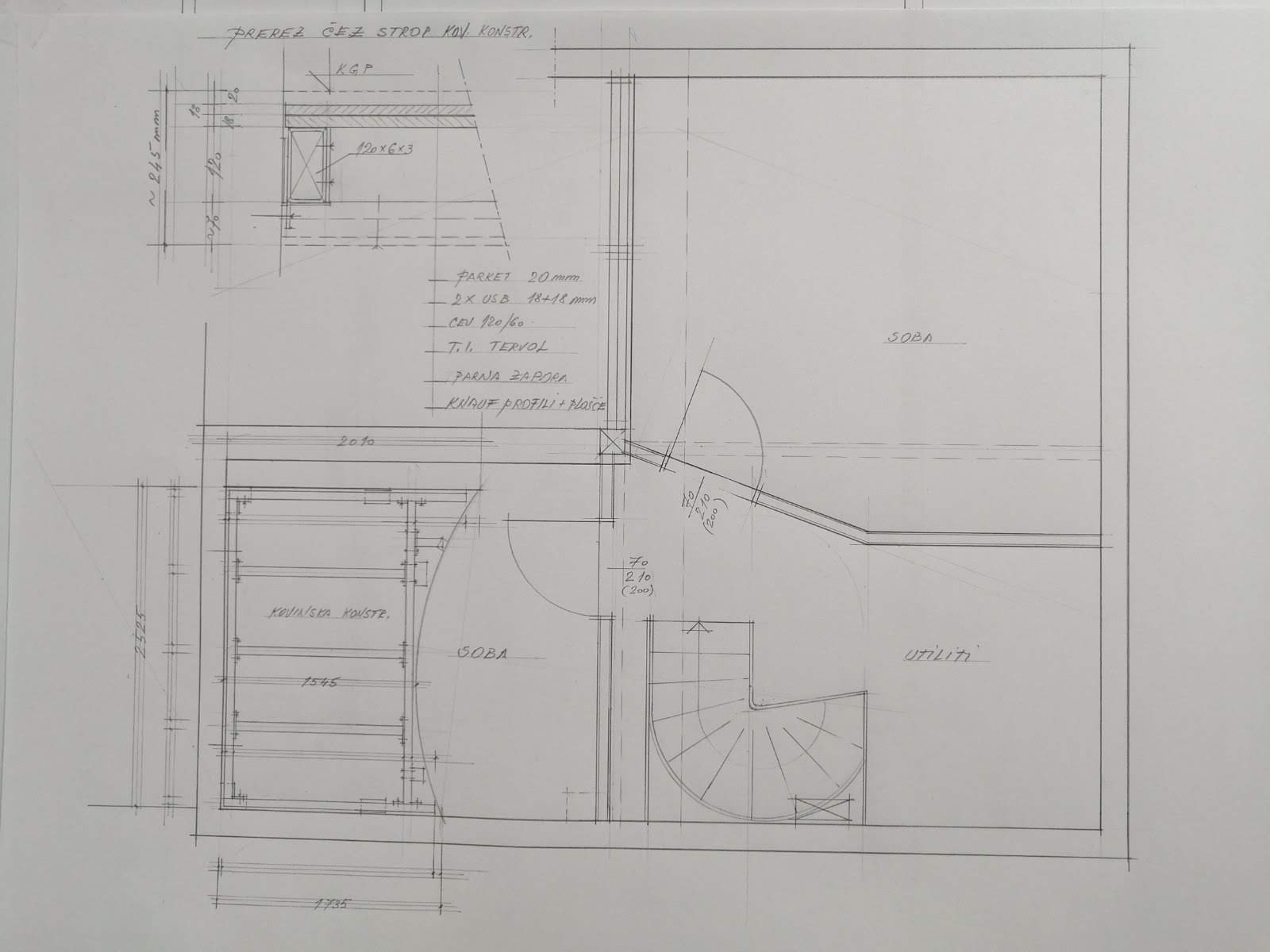 Lastniki so želeli bolje izkoristiti neizkoriščen prostor nad dnevno sobo. Višina stropa je omogočala izdelavo dodatnega nadstropja, kjer so želeli pridobiti dve novi sobi, otroško in spalnico. Cilj je bil ustvariti funkcionalno, varno in estetsko rešitev, ki bo dolgoročno služila družini.